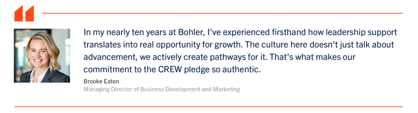 We recognize that meaningful progress requires sustained commitment, strategic action, and transparent accountability. Through our partnership with CREW and our internal initiatives, we are dedicated to creating lasting change that benefits not only our organization but the commercial real estate industry as a whole.